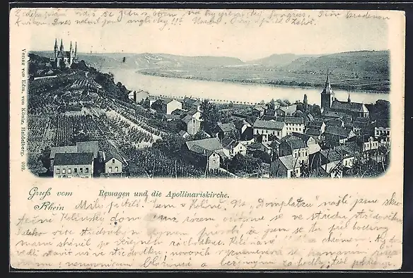 AK Remagen, Ortsansicht mit Apollinariskirche und Rhein