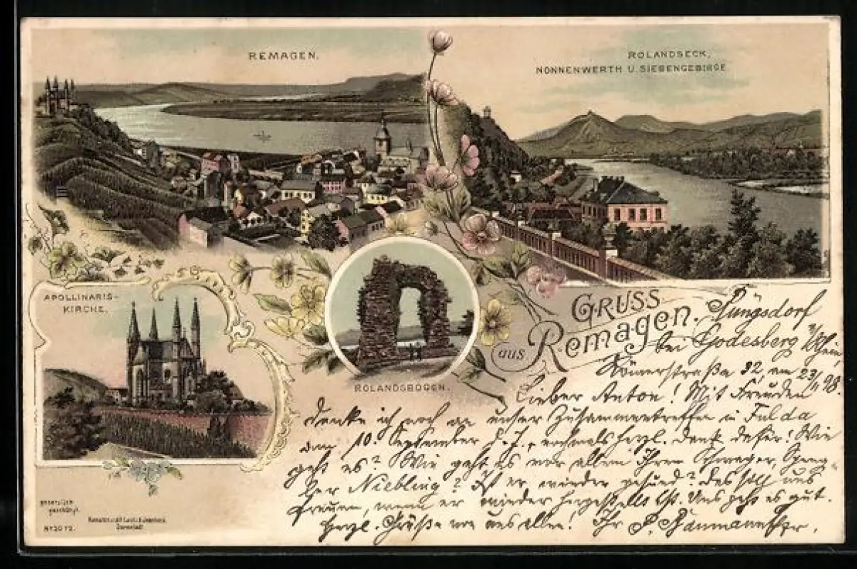 AK Remagen, Rolandsbogen, Apollinariskirche und Ortsansicht