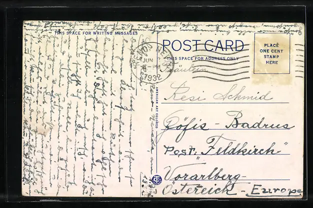 gelaufen 1932, Briefmarke entfernt, guter Zustand