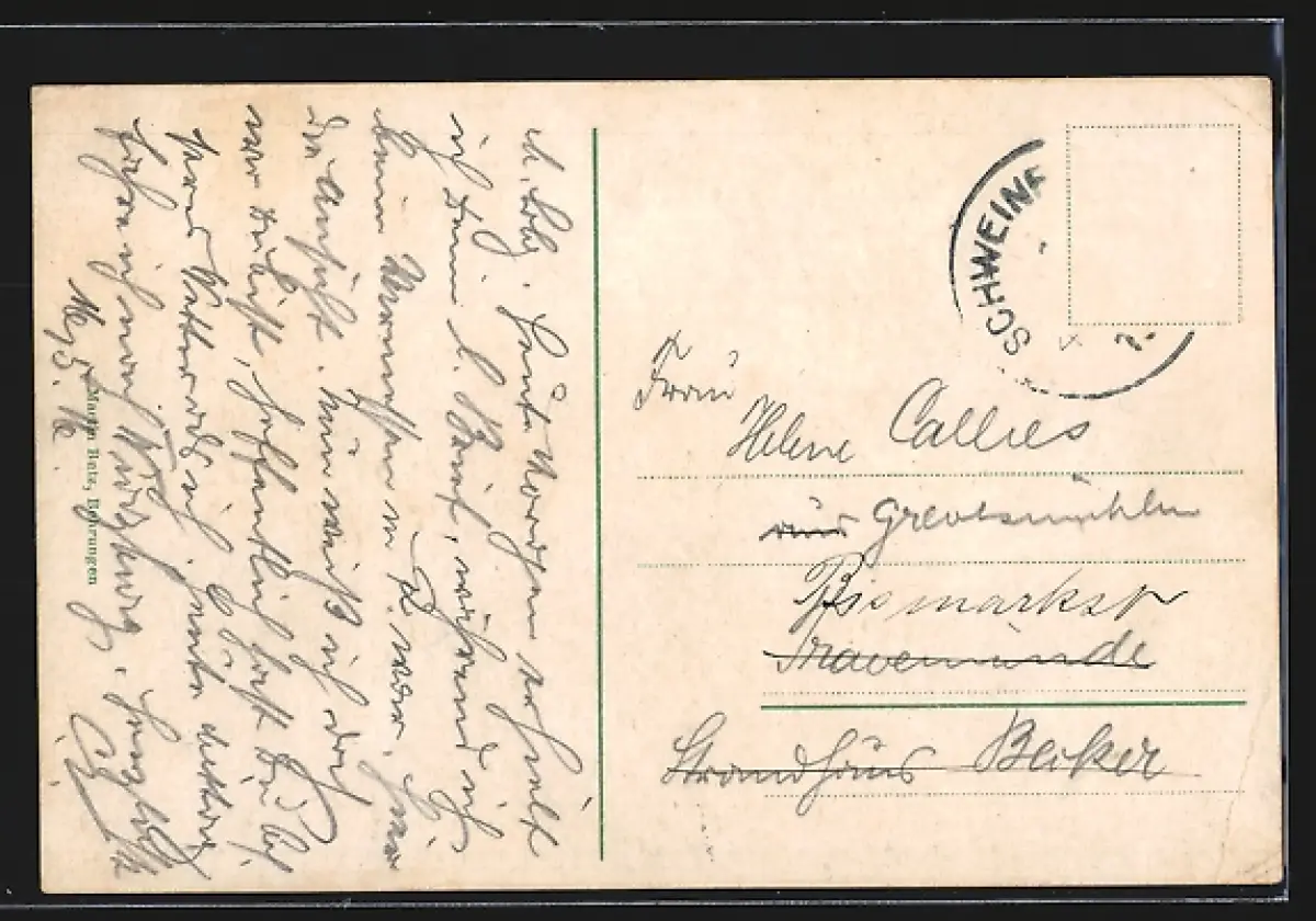 alte Ansichtskarte, gelaufen, Briefmarke entfernt, guter Zustand