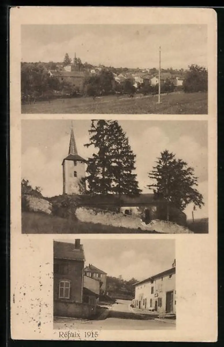 AK Répaix, Vue panoramique du village, église et rue principale en 1915