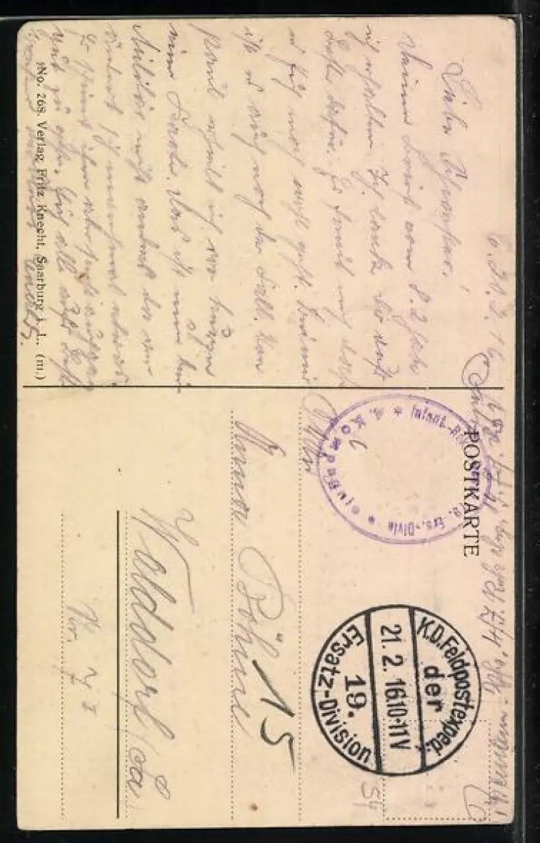 alte Ansichtskarte, gelaufen 1916, Eckknick oben rechts, Bugspur unten mittig, Eckschaden rechts oben, sonst guter Zustand