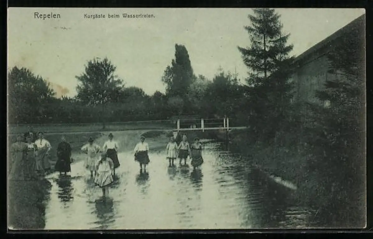 Personenbezogene Daten auf der Rückseite der Karte wurden durch blauen Textmarker unkenntlich gemacht. Die blauen Stellen sind auf die Vorderseite durchgeweicht und wirken sich negativ auf das Postkartenfoto aus