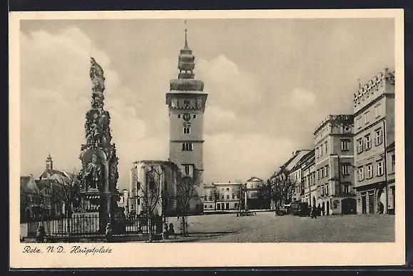 AK Retz /N. D., Hauptplatz mit Pestsäule und Rathaus