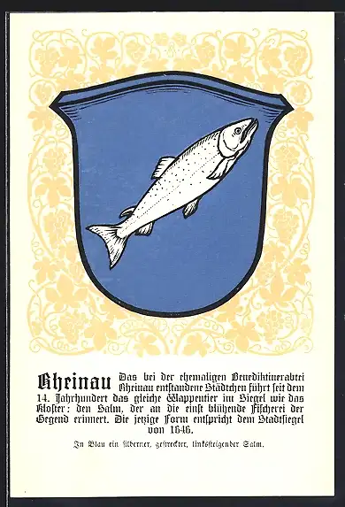 AK Rheinau, Wappen auf Weintrauben-Ornamenten, Info-Text
