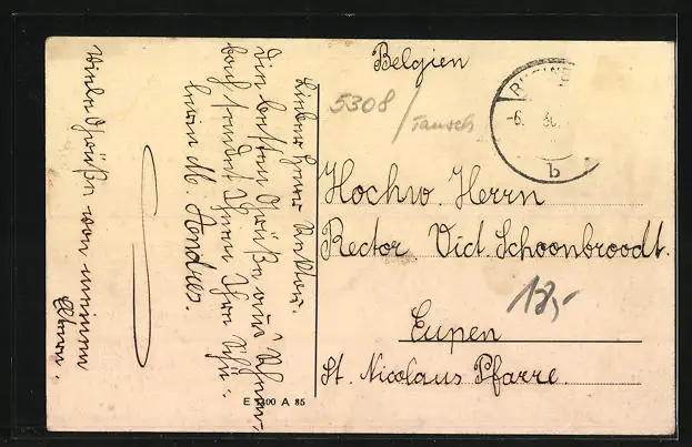 alte Ansichtskarte, gelaufen, Briefmarke entfernt, guter Zustand