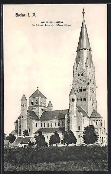 AK Rheine, Ansicht der Antonius-Basilika mit mächtigem Glockenturm