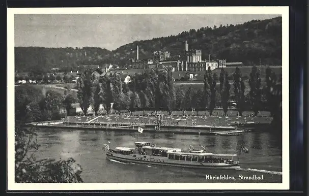 AK Rheinfelden, Ausflugsdampfer am Strandbad