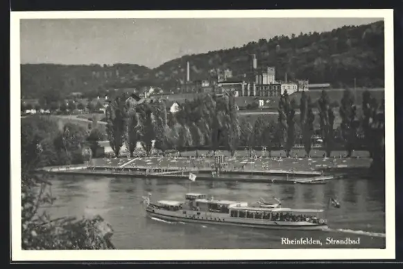 AK Rheinfelden, Ausflugsdampfer vor dem Strandbad