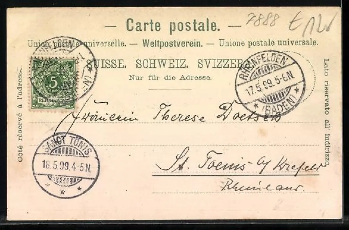 alte Ansichtskarte, gelaufen 1899, guter Zustand