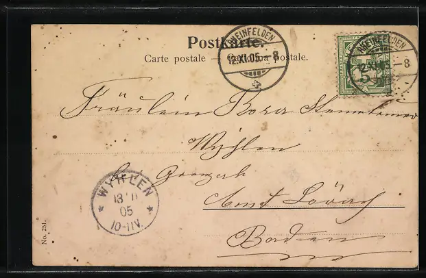 alte Ansichtskarte, gelaufen 1905, Eckknick re. unten, guter Zustand