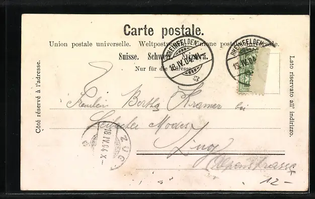 alte Ansichtskarte, gelaufen 1904, Knick in der unteren Kante, guter Zustand