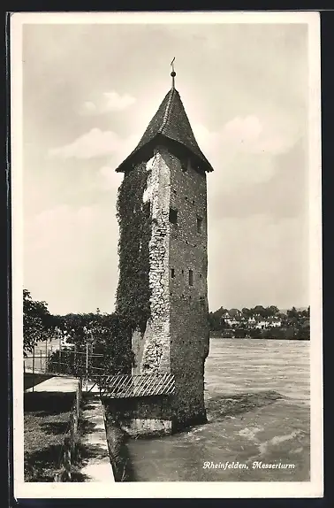 AK Rheinfelden, Wasserturm mit Ufer und Ortsblick
