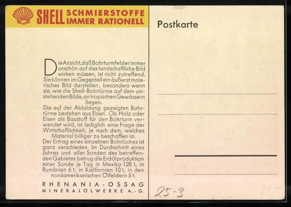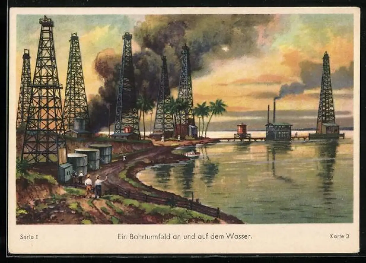 AK Rhenania - Ossa AG, Mineralölwerke AG, Shell, Ein Bohrturm an und auf dem Wasser
