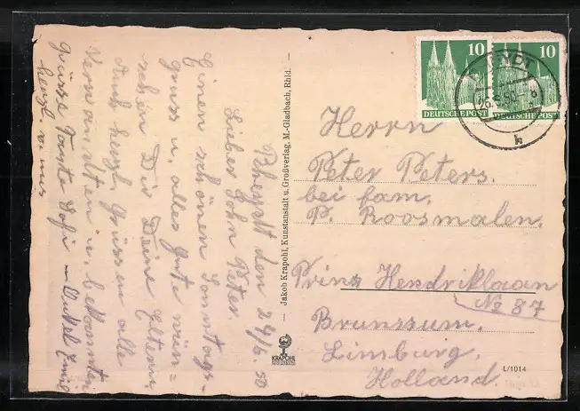 alte Ansichtskarte, gelaufen 1950, guter Zustand