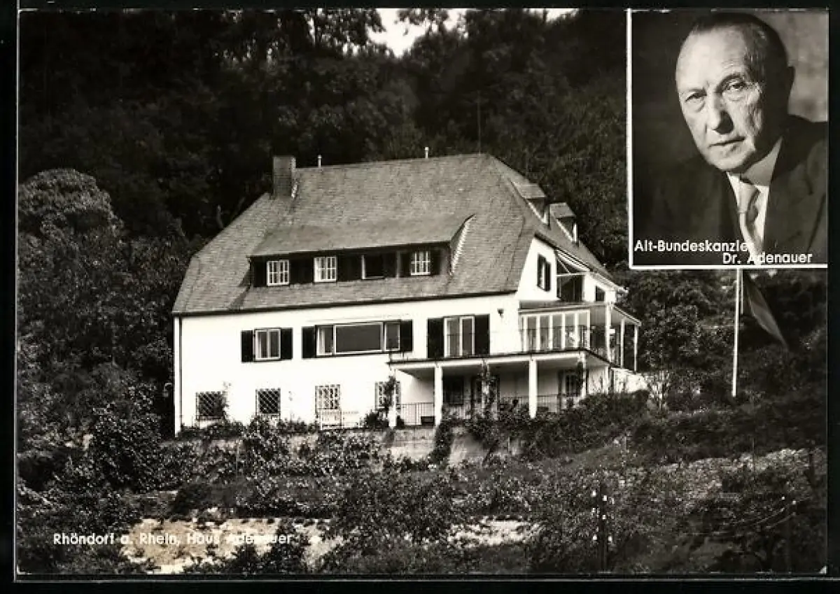 AK Rhöndorf, Haus Adenauer mit Portrait von Dr. Adenauer