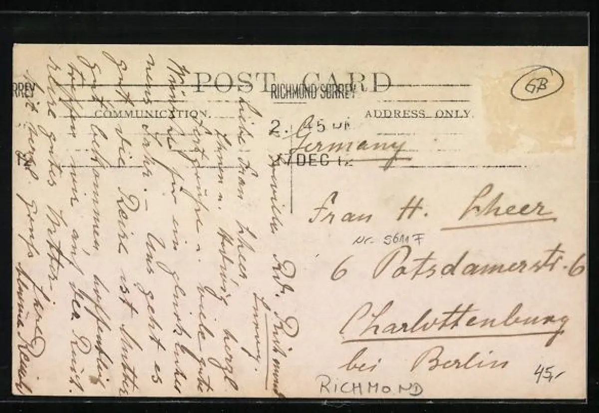 alte Ansichtskarte, gelaufen, Briefmarke entfernt, guter Zustand