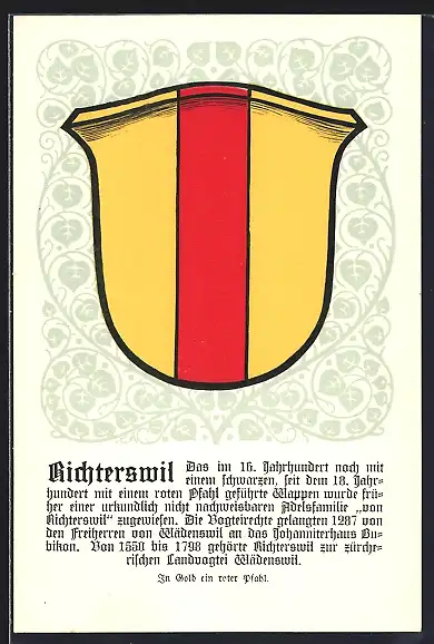 AK Richterswil, Wappen auf Blatt-Ornamenten, Info-Text