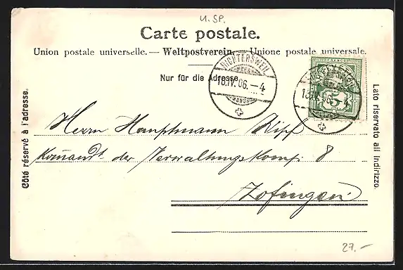 alte Ansichtskarte, gelaufen 1906, Eckknicke oben, guter Zustand