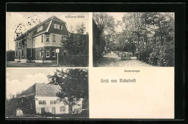 AK Rickelrath, Restaurant-Pension Becker mit Garten, Mühle