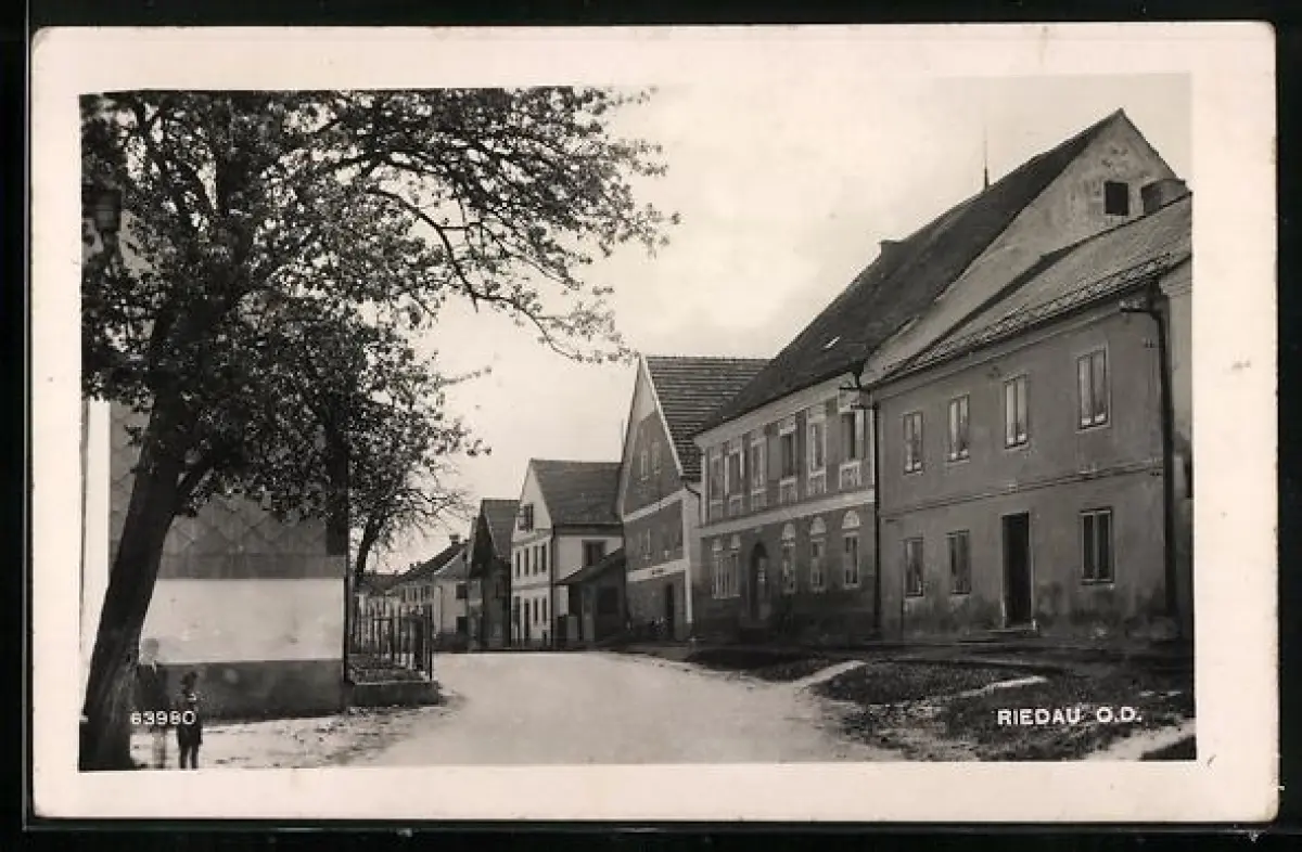 AK Riedau /O. D., Strassenpartie mit Wohnhäusern