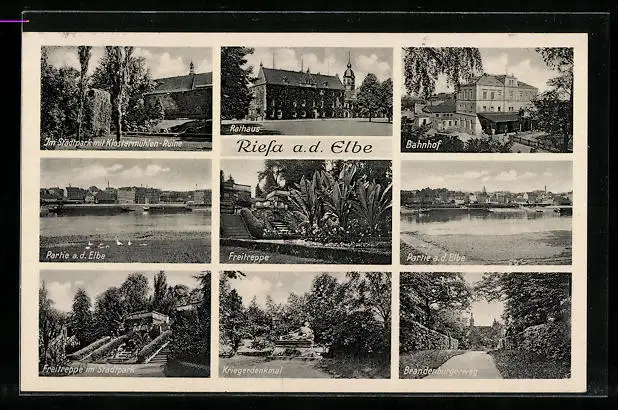 AK Riesa /Elbe, Bahnhof, Brandenburgerweg, Rathaus