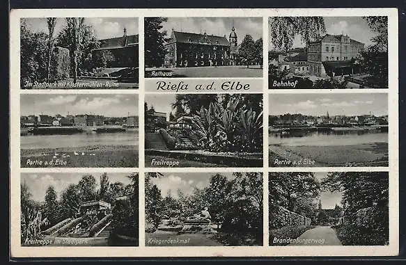 AK Riesa /Elbe, Bahnhof, Brandenburgerweg, Rathaus