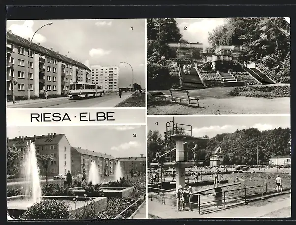 AK Riesa /Elbe, In der Karl-Marx-Städter-Strasse, Freibad