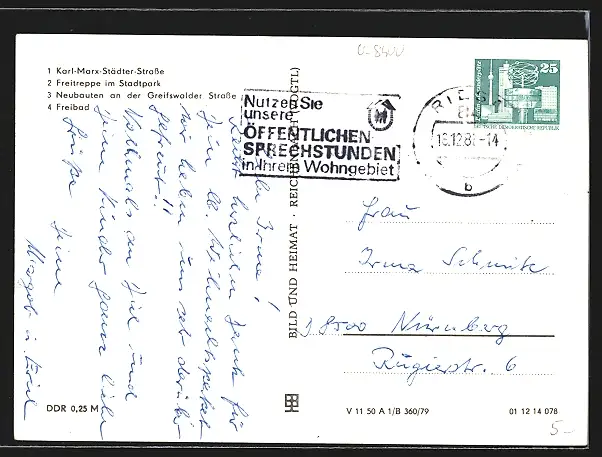 alte Ansichtskarte, gelaufen 1981, Eckknicke oben, guter Zustand