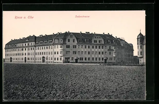 AK Riesa a. Elbe, Sedanstrasse mit Geschäft
