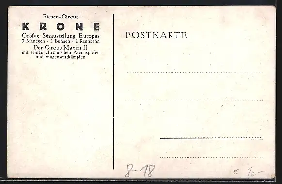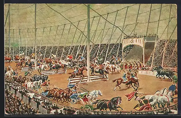 AK Riesen-Circus Krone, der Circus Maxim II, Wagenwettkampf