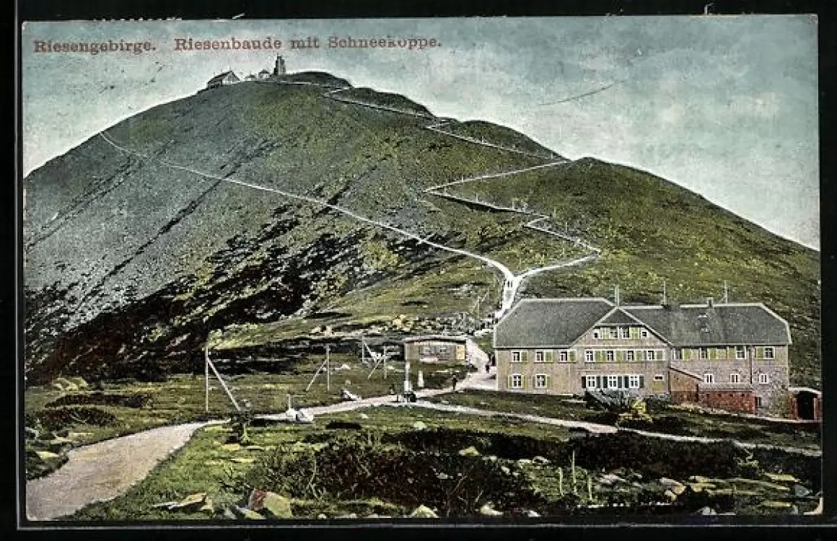 AK Riesengebirge, Riesenbaude mit Schneekoppe