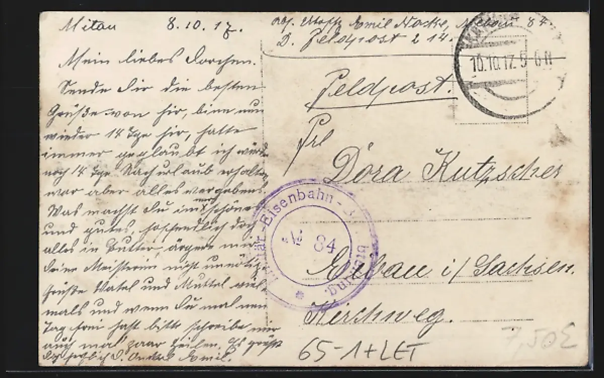 gelaufen 1917, Abriebspur oben mittig, guter Zustand