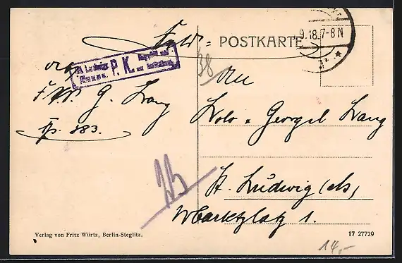 alte Ansichtskarte, gelaufen 1918 als Feldpost, guter Zustand