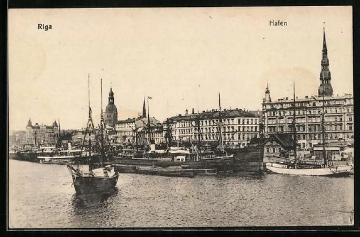 AK Riga, Hafenansicht, Schiffe, Dampfer