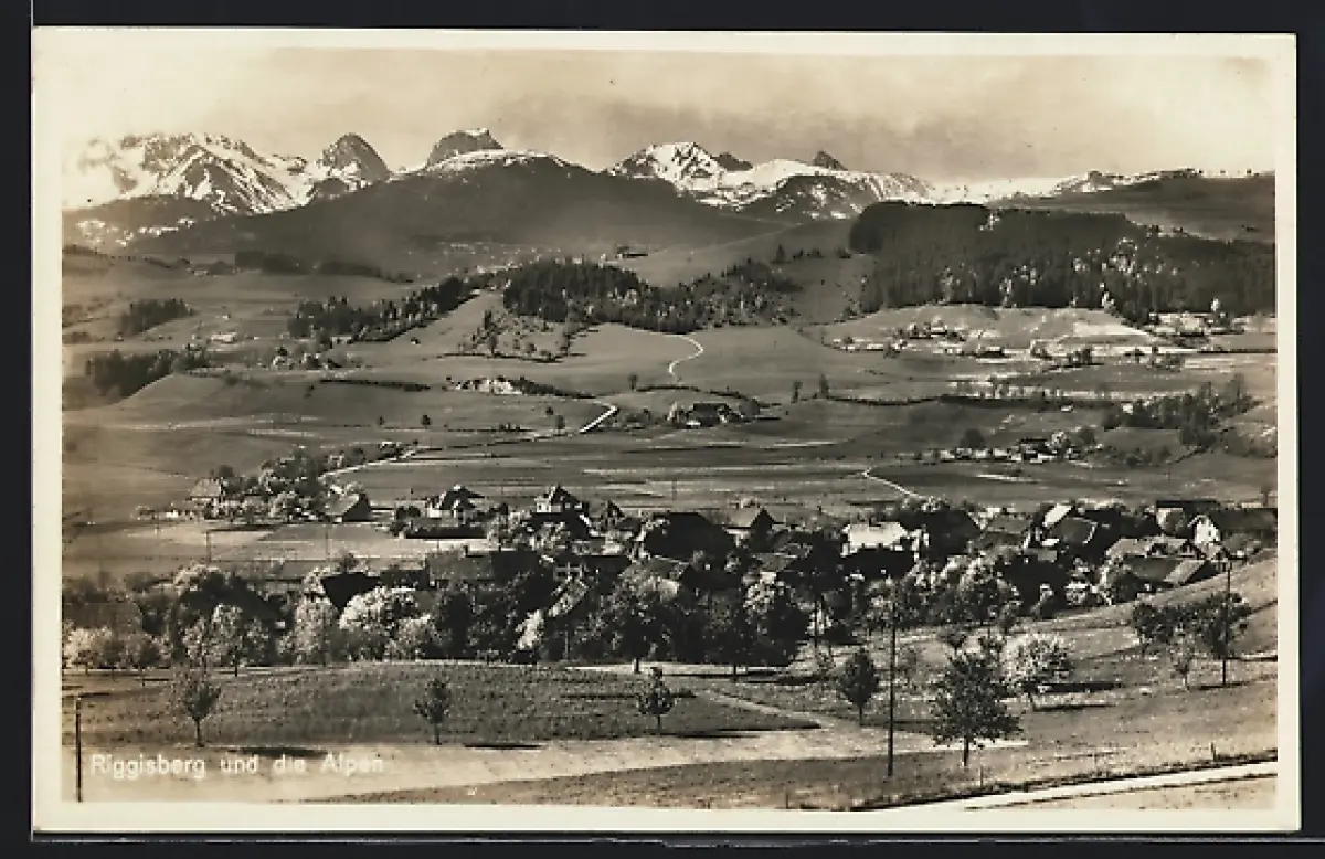 AK Riggisberg, Gesamtansicht mit Alpen