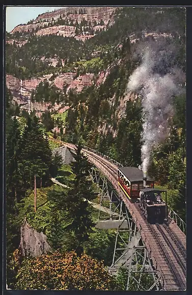 AK Rigi-Bergbahn auf der Schnurtobelbrücke