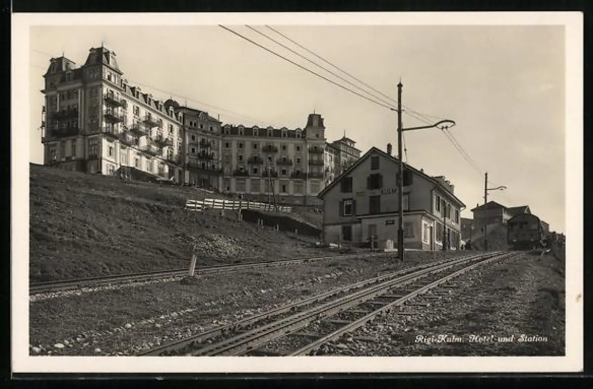 AK Rigi-Kulm, Bergbahn mit Station und Hotel
