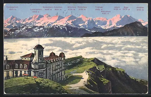 AK Rigi-Kulm, Blick über das Wolkenmeer in die Alpen
