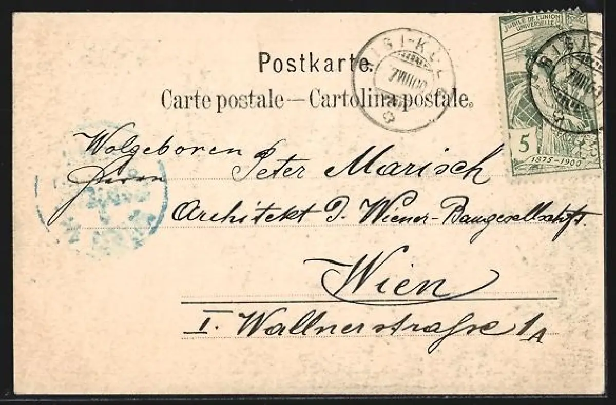 alte Ansichtskarte, gelaufen 1900, Stempelspur, guter Zustand