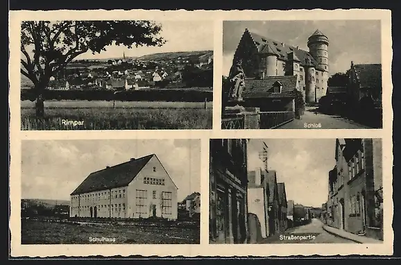 AK Rimpar, Strassenpartie, Schloss, Schulhaus