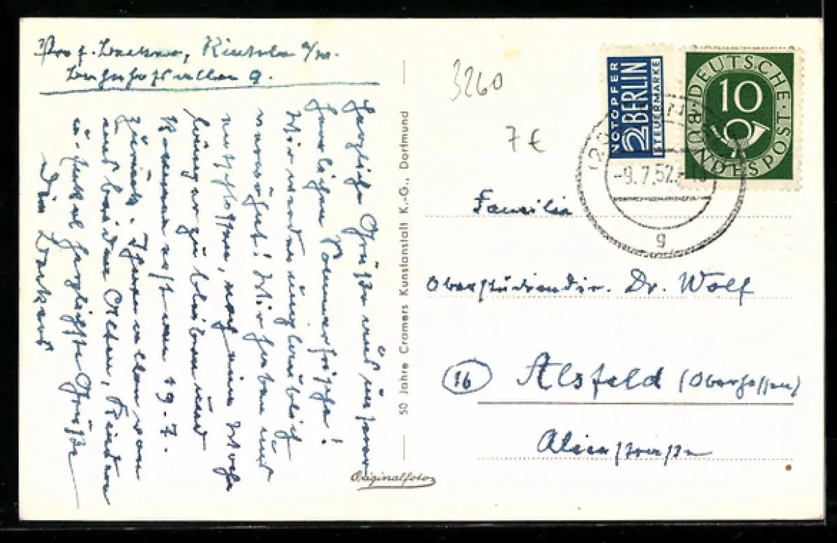alte Ansichtskarte, gelaufen 1952, guter Zustand