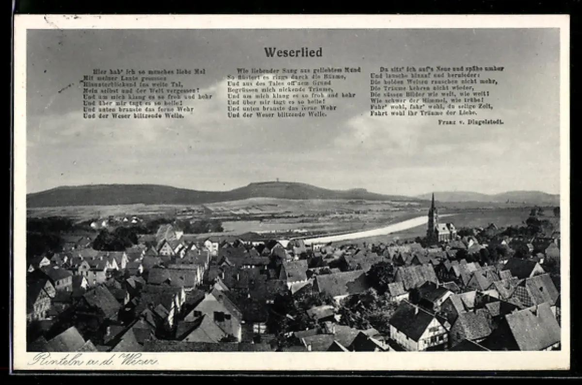 AK Rinteln a. d. Weser, Panorama mit Weserlied