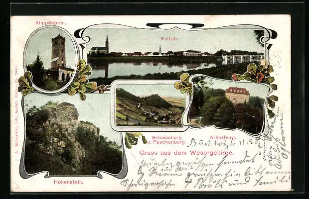 AK Rinteln an der Weser, Panorama der Stadt, Klippenturm, Hohenstein