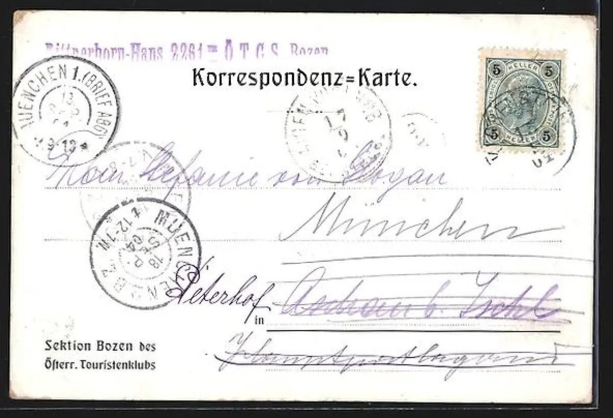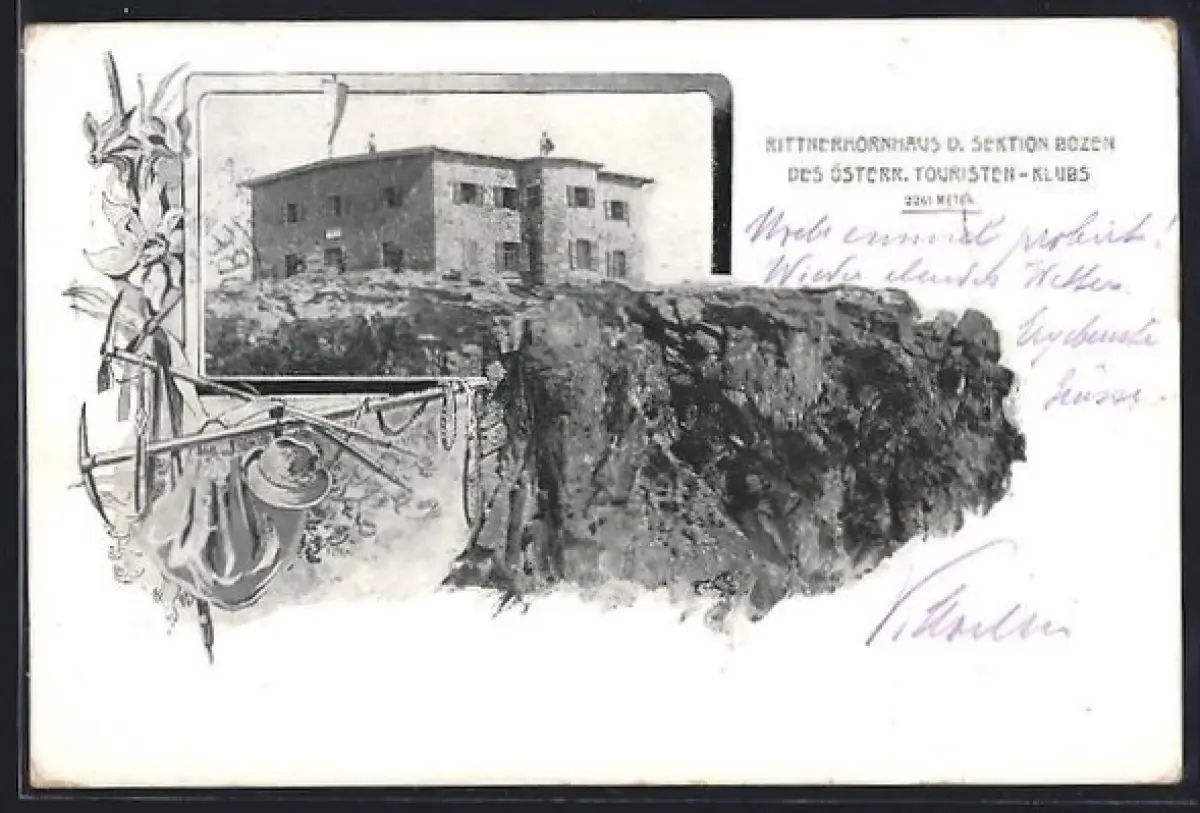 AK Rittnerhornhaus der Sektion Bozen des Österr. Touristen-Klubs, Bergsteigerausrüstung, Passepartout