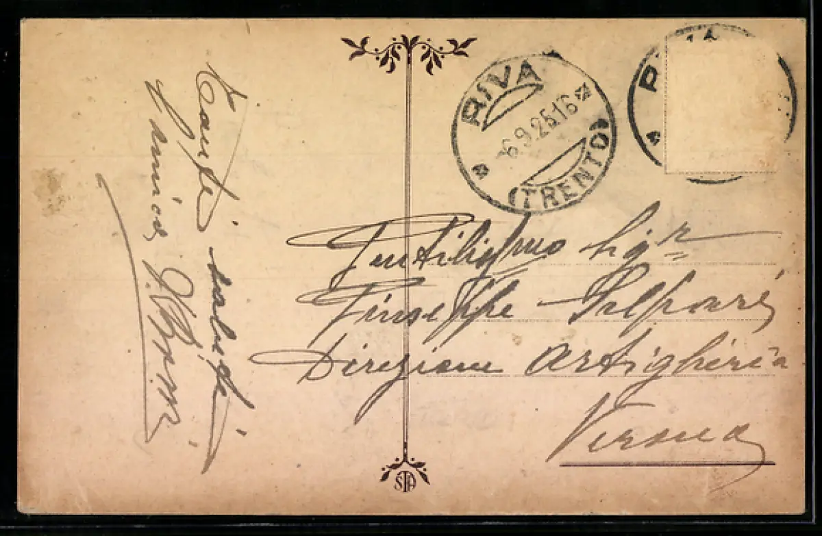 gelaufen 1916, Briefmarke entfernt, guter Zustand