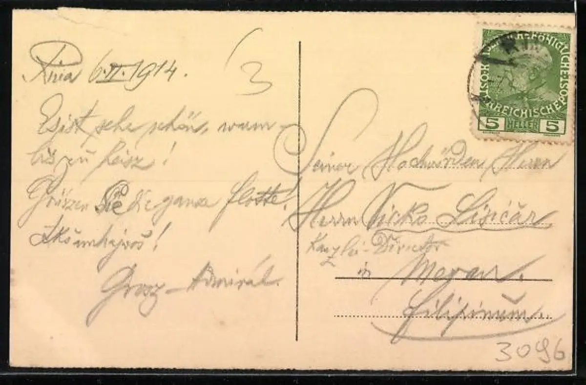 alte Ansichtskarte, gelaufen, rückseitig Oberflächenschaden, aus Leporello, guter Zustand