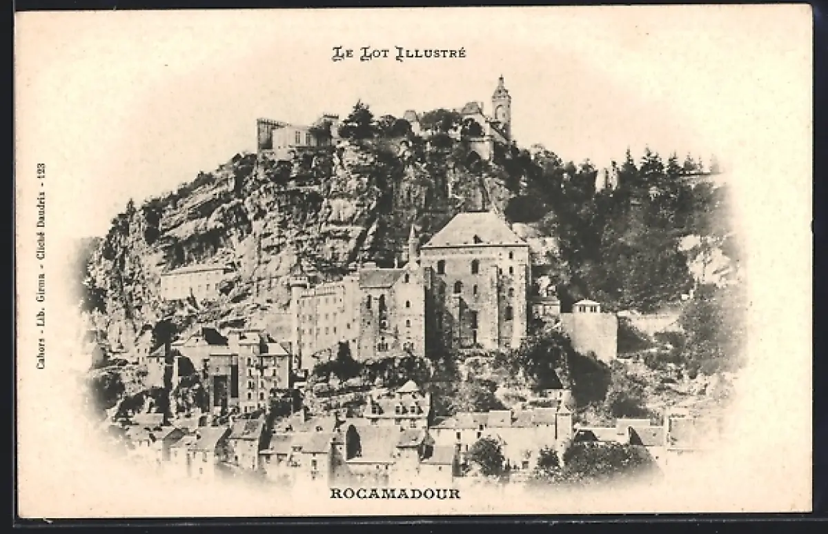AK Rocamadour, Vue du sanctuaire sur la falaise