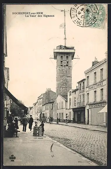 AK Rochefort-sur-Mer, La Tour des Signaux et Rue Animée