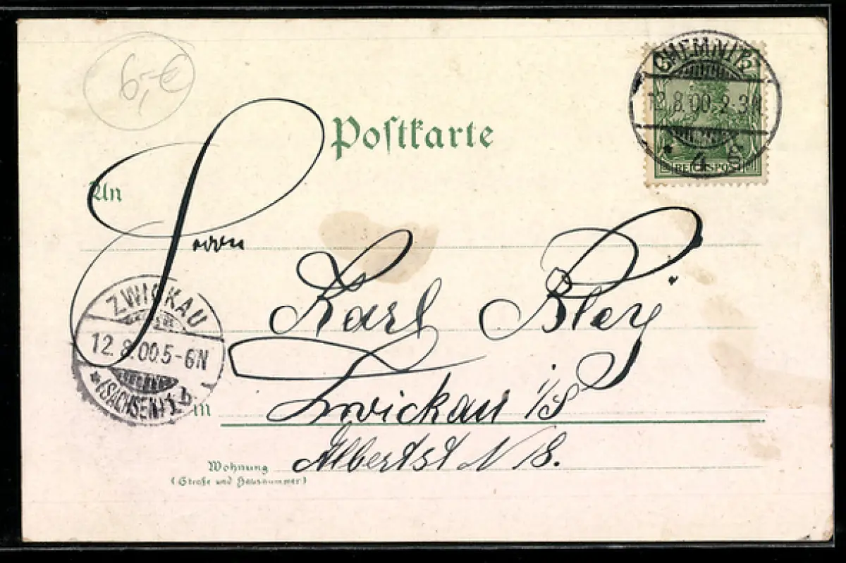 alte Ansichtskarte, gelaufen 1900, Abriebspur oben rechts, guter Zustand